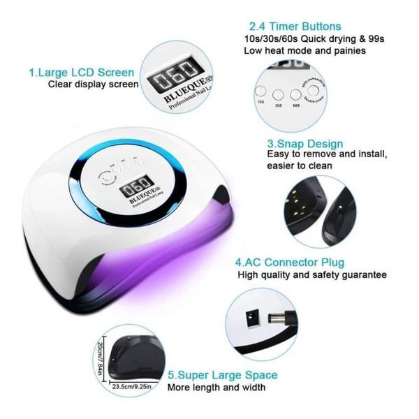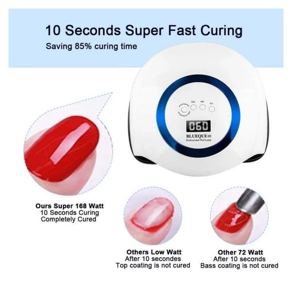 168W puissance maximale! Durcissement efficace élevé du gel et raccourcir votre temps de durcissement de 90%. Plus rapide et plus facile!