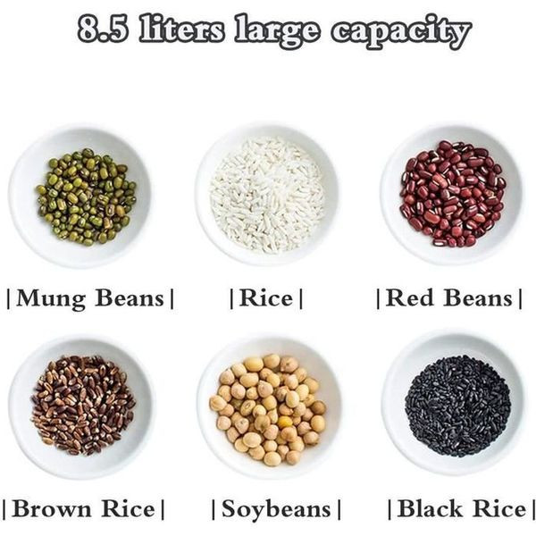 Le distributeur de stockage de riz est assez grand pour contenir 8,5 LITRE, ce qui peut répondre aux besoins de votre famille.