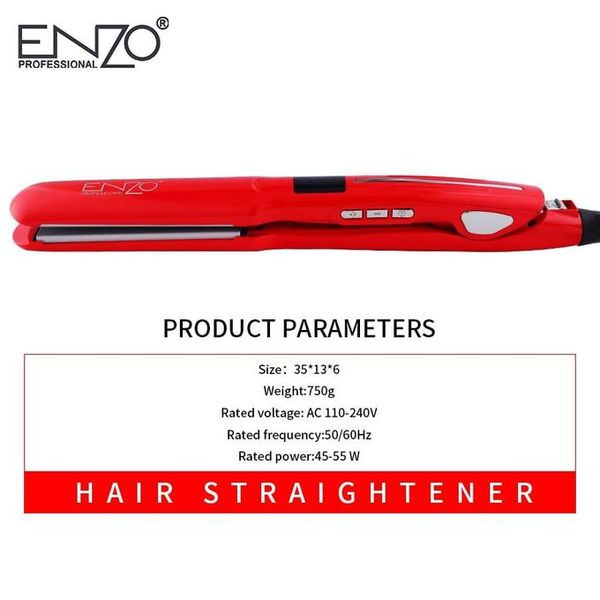 Description de l'article Numéro d'article: EN-3845 Tension nominale: ca 110-240V Fréquence nominale: 50/60Hz Puissance nominale: 45-55 W Taille: 35*13*6CM Poids: 750g Caractéristique: Plaque revêtue de céramique Contrôle de la température 450-950 ℉ Pour tous les types de cheveux Le chauffage PTC chauffera rapidement Styles Super lisses, ne collent jamais aux cheveux LED affichage de la température Emballage: 1 x fer à lisser 1 x boîte d'origine 100% vraie image, 100% neuf, Le produit sera bien emballé avec la boîte, donc ne vous inquiétez pas des dommages.