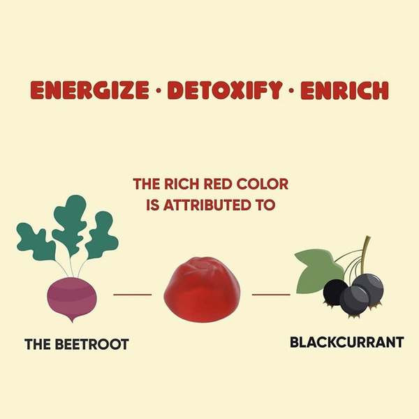 Sucre de canne biologique, tapioca biologique, eau, pectine, sodium dihydrate, acide citrique, acide malique, arôme naturel de pomme, carotte biologique (pour la couleur), pomme biologique (pour la couleur), cassis biologique (pour la couleur), betterave biologique, grenade biologique